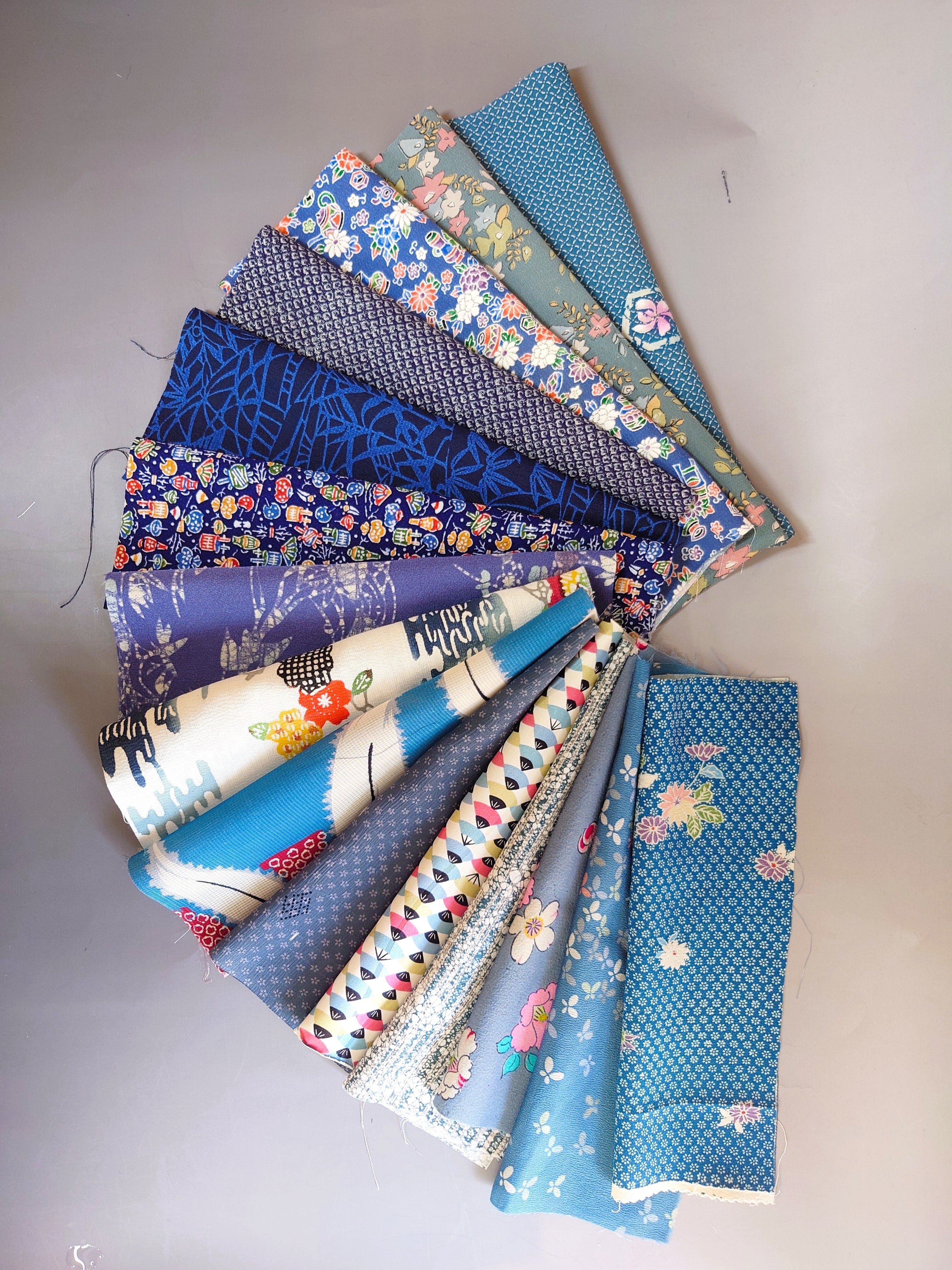 【古布】青小紋・友禅の15枚セット V (正絹)