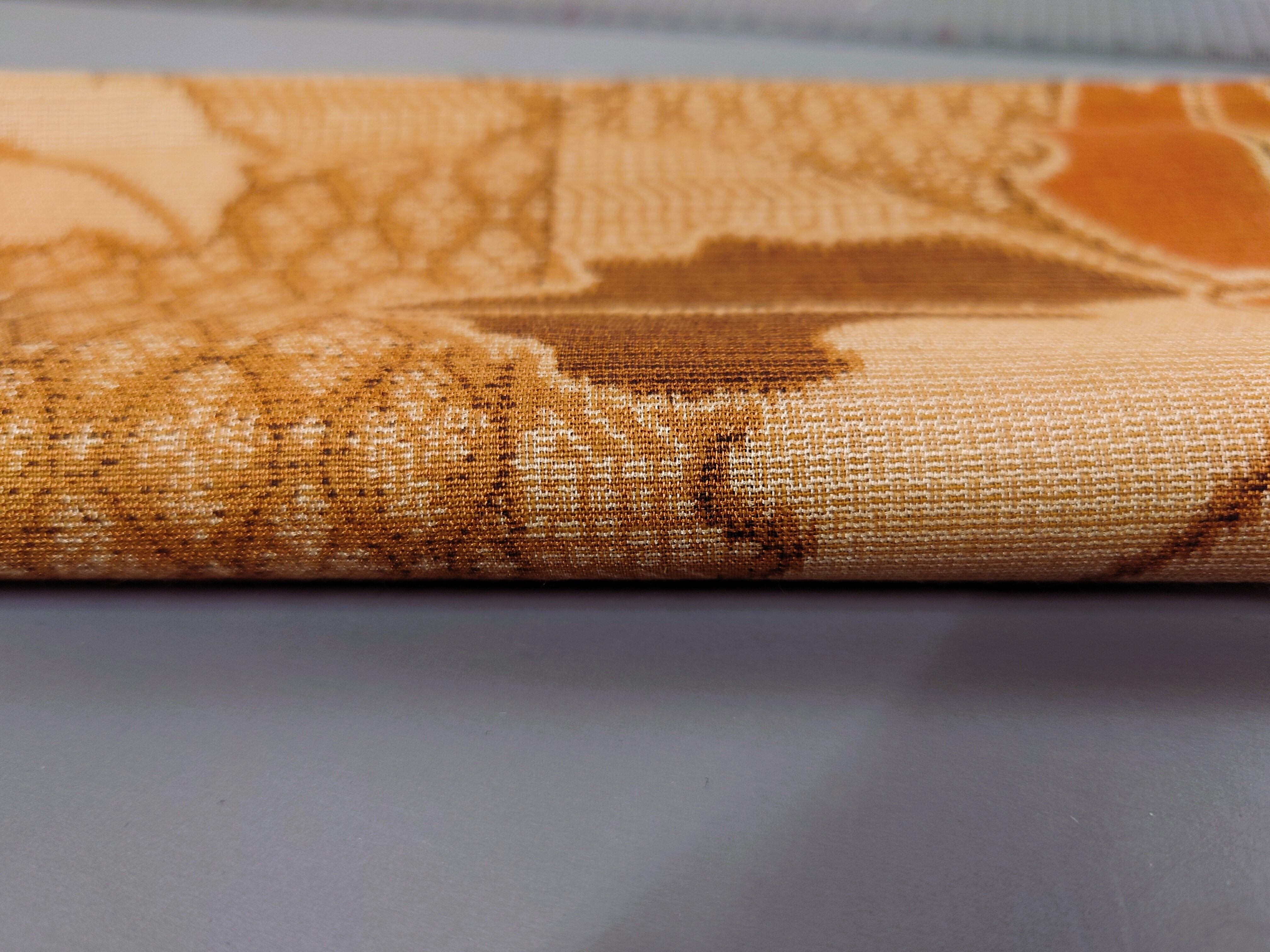 【古布】ニコニコ木綿 茶色大柄 大巾