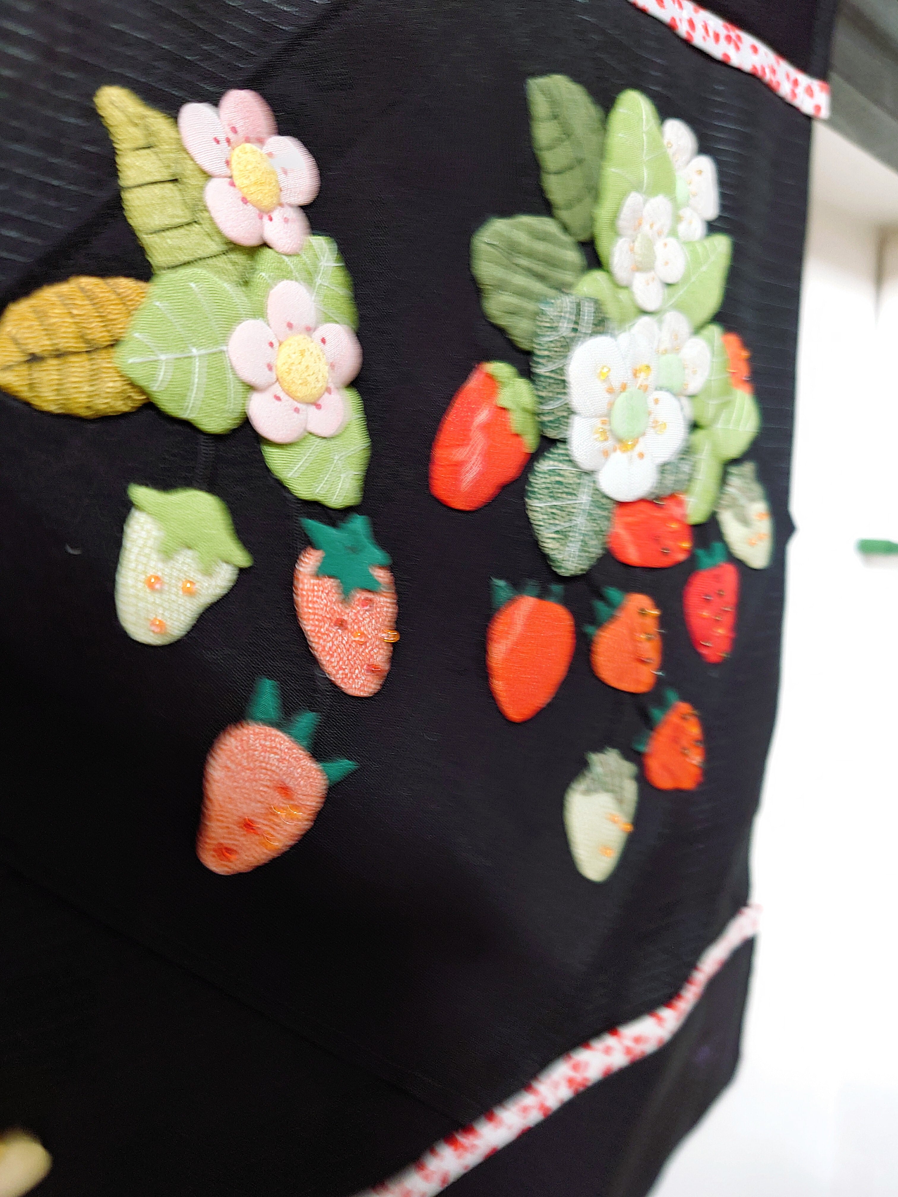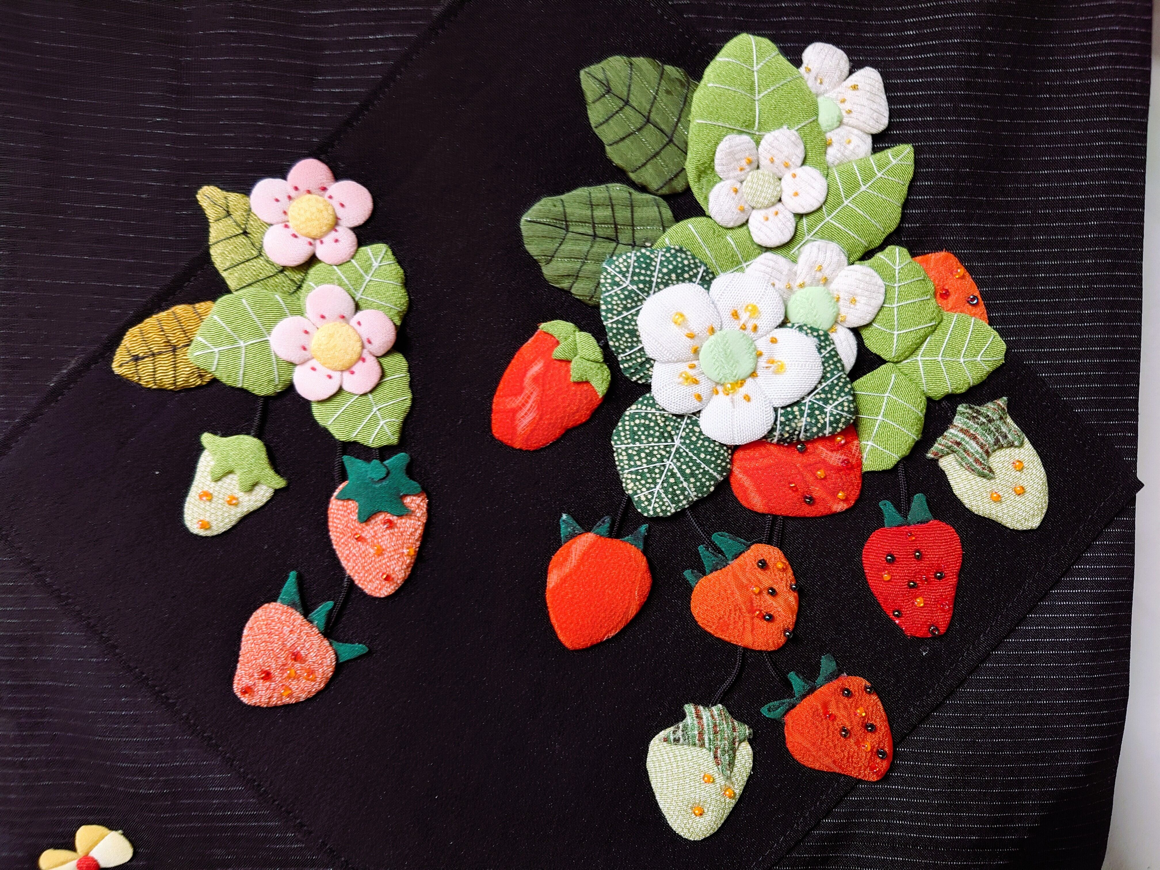 黒地ベースに押絵のいちごの作品です。