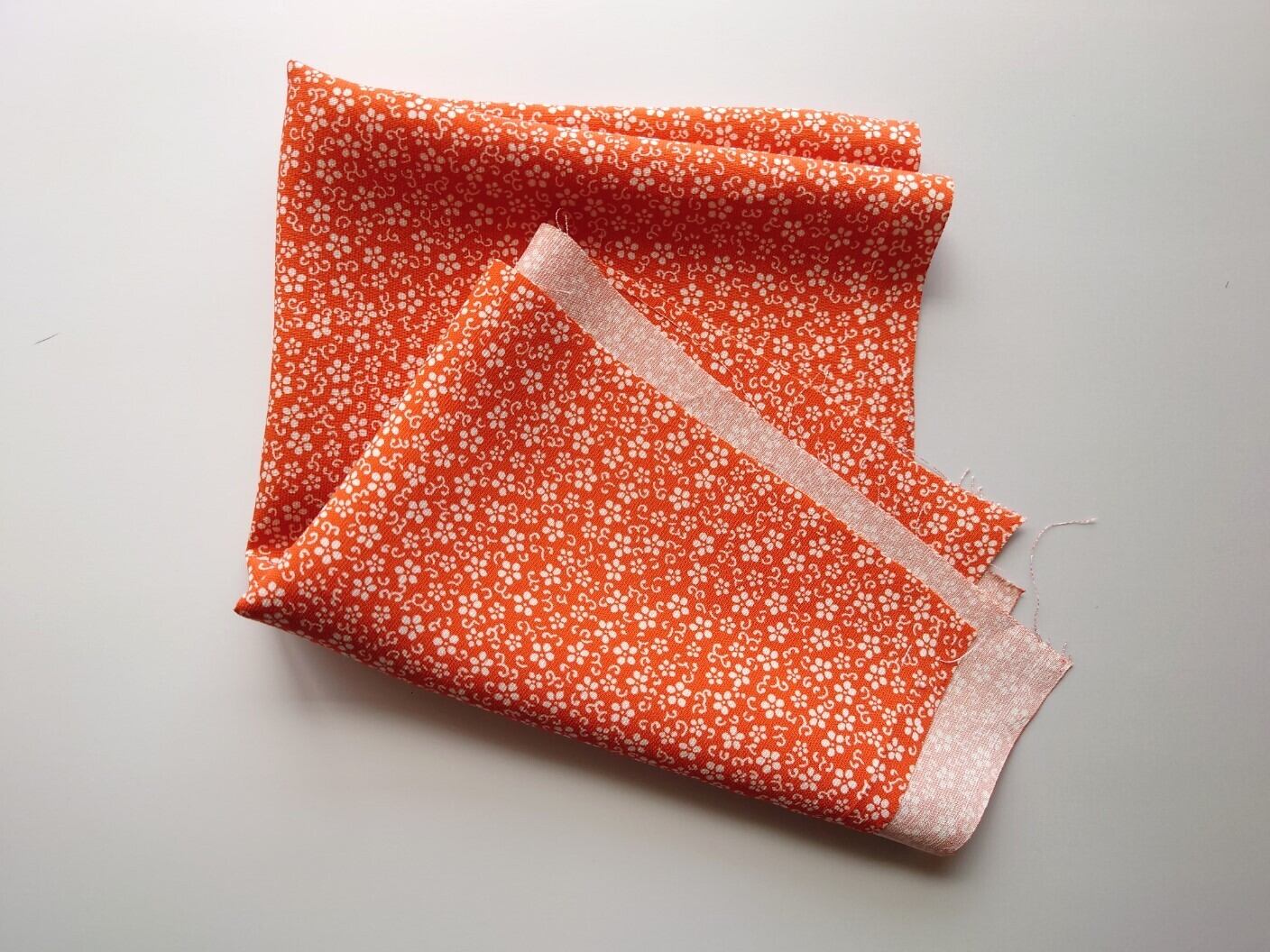 【古布】朱色に白抜きサクラソウと唐草 ドール着物サイズ