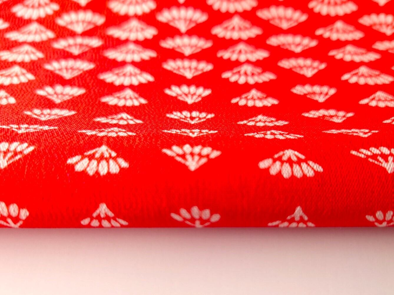 赤地に大小細かい白抜きの扇面柄です。