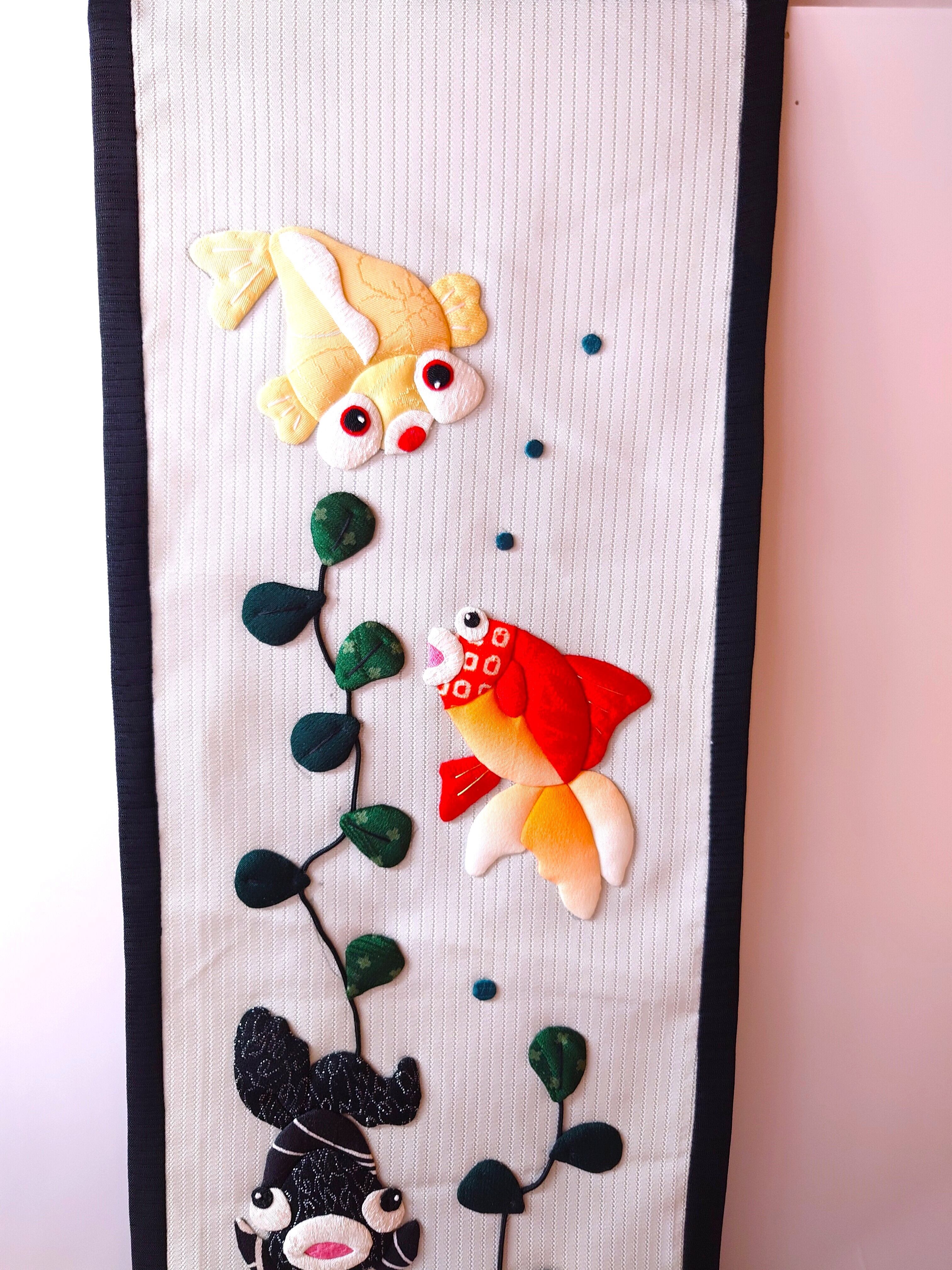 #タペストリー #金魚 #涼 #夏の作品 #水草 #絽 #和室にあった #川越 #京
