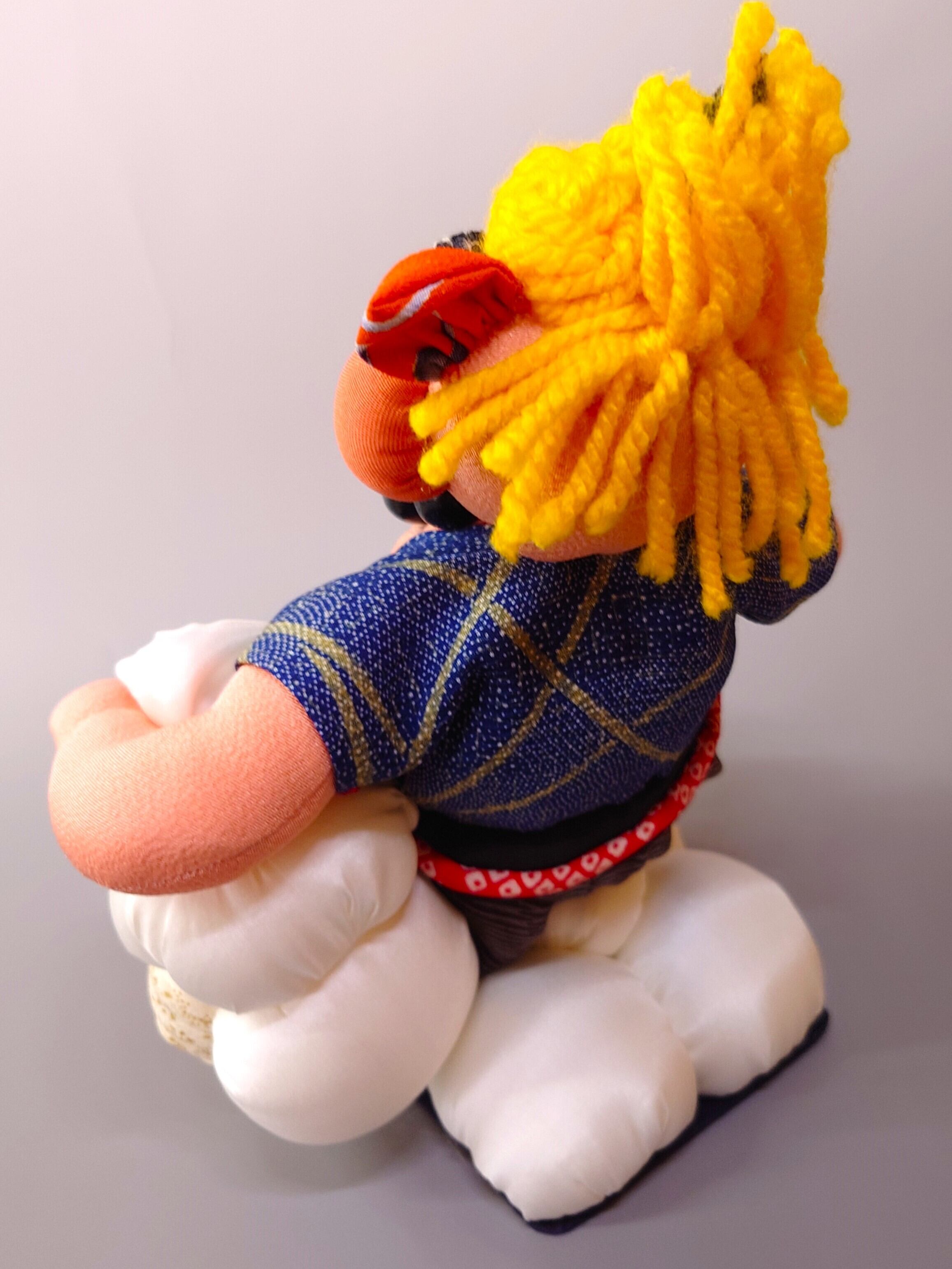 風神雷神の着物の古布を使用したオリジナル人形です。