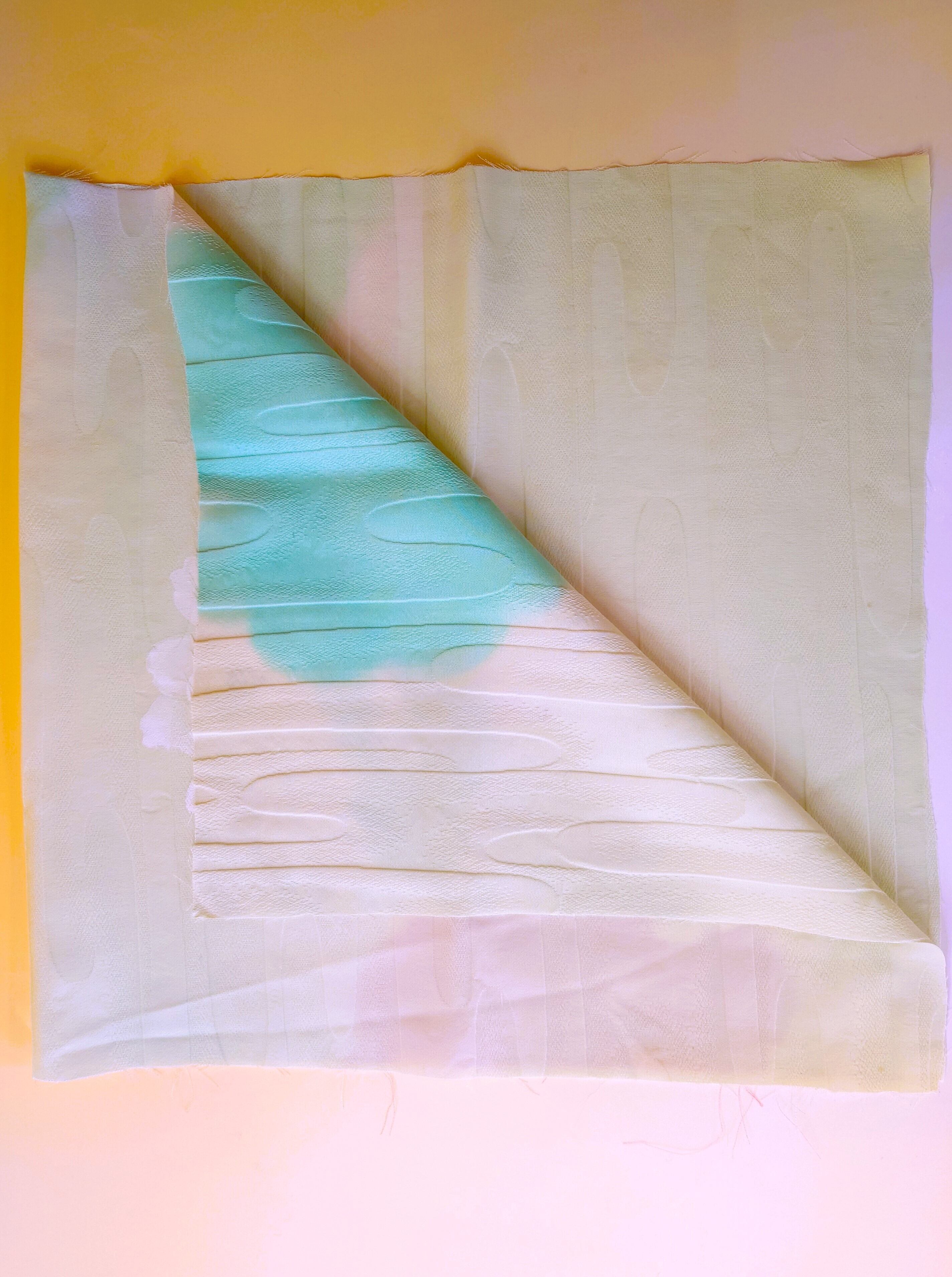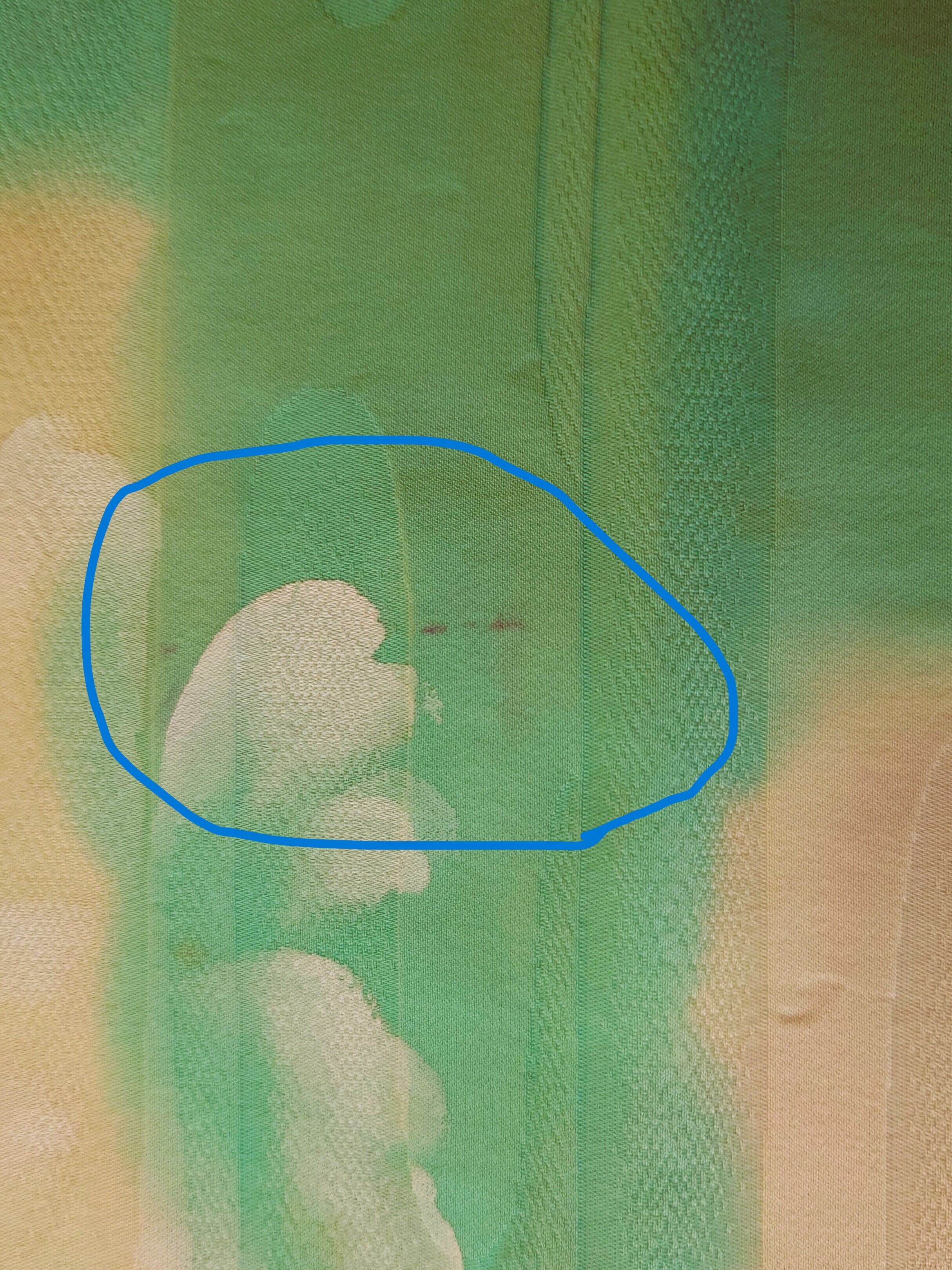 薄い若草色のベースにぼかしで赤・青・白で色が入っています。