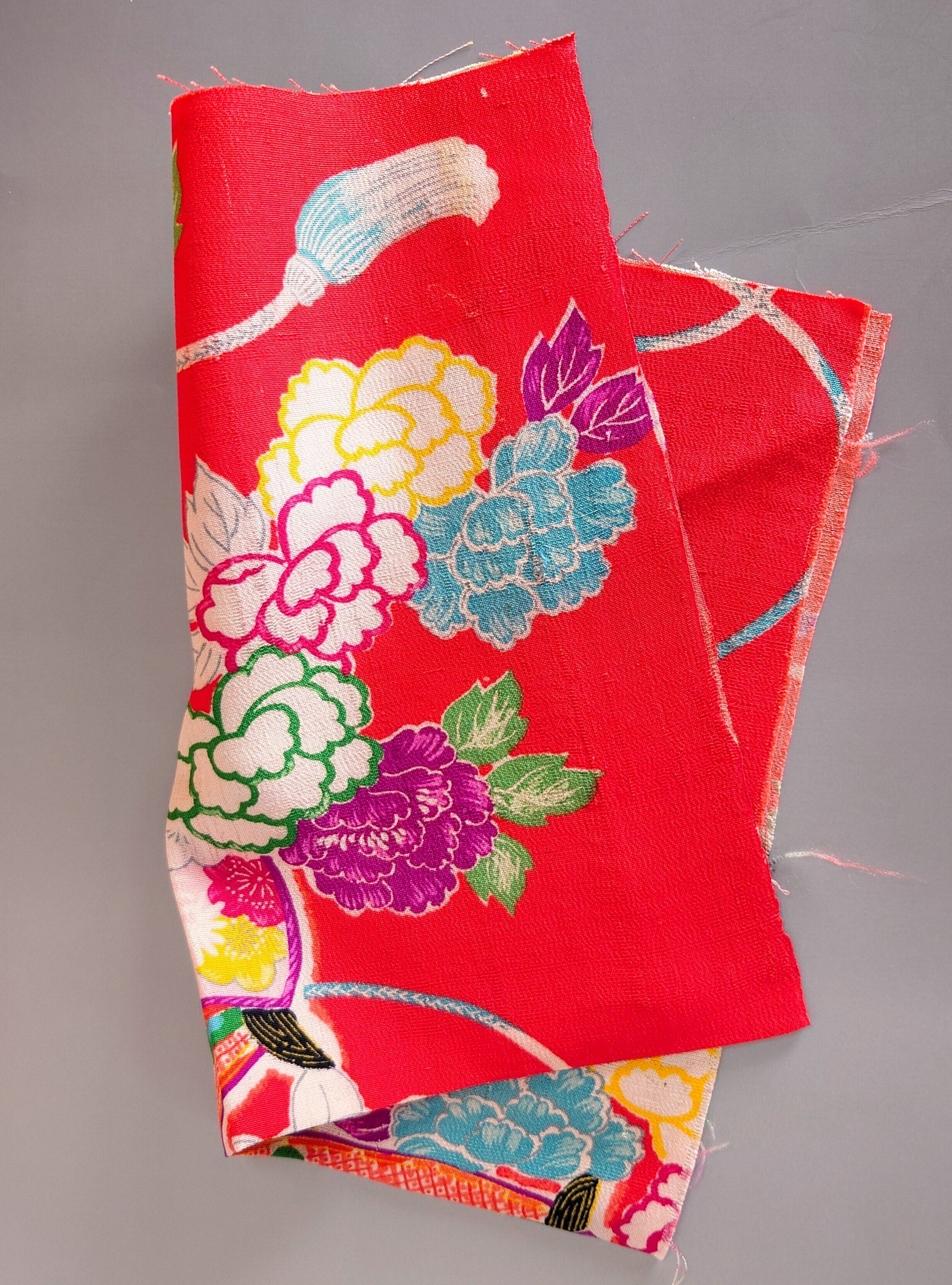 #正絹 #赤 #朱赤 #吉祥柄 #おめでたい柄 #花柄 #菊 #牡丹