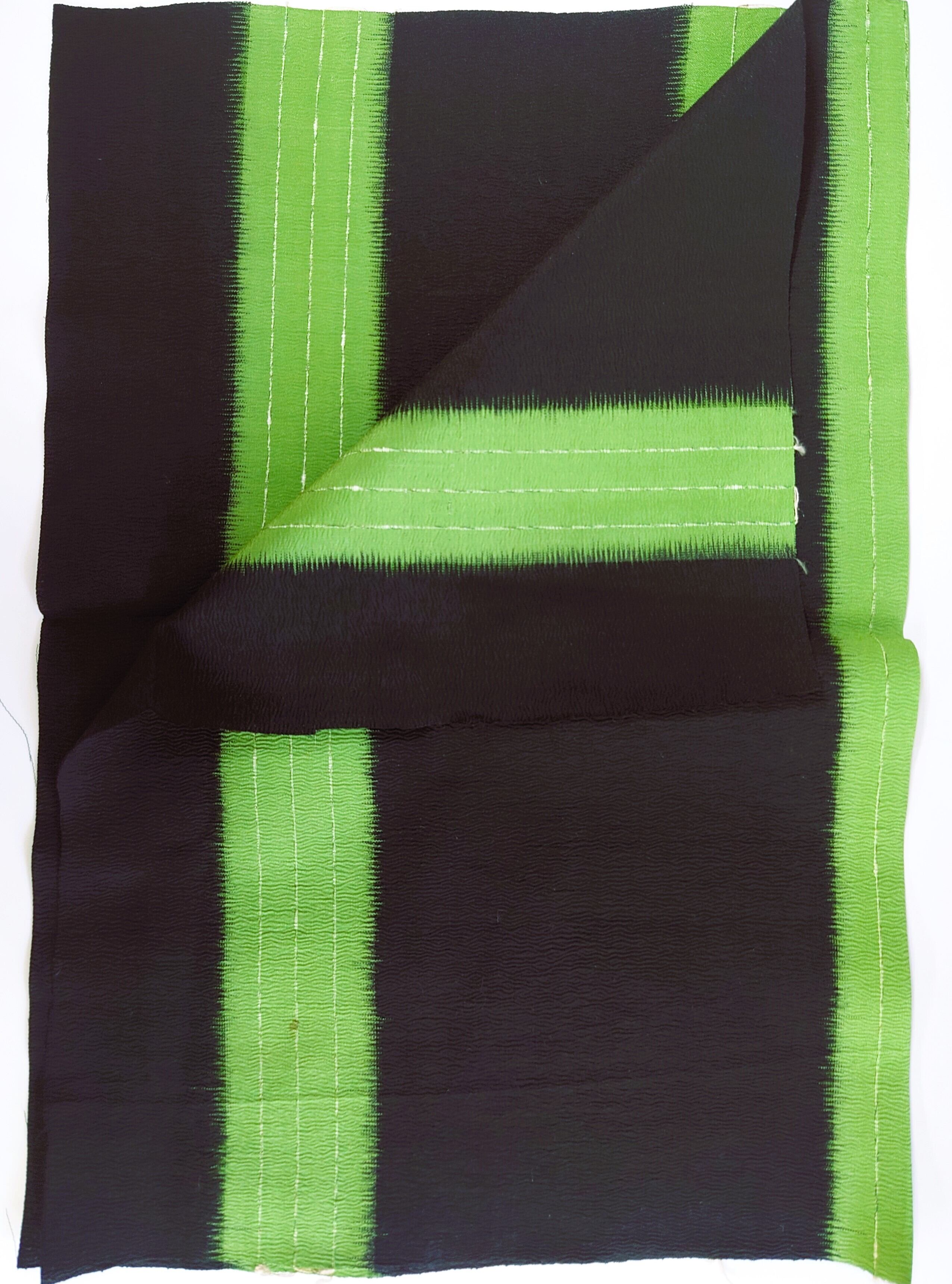 【古布】緑×黒 太縞 ドール着物サイズ