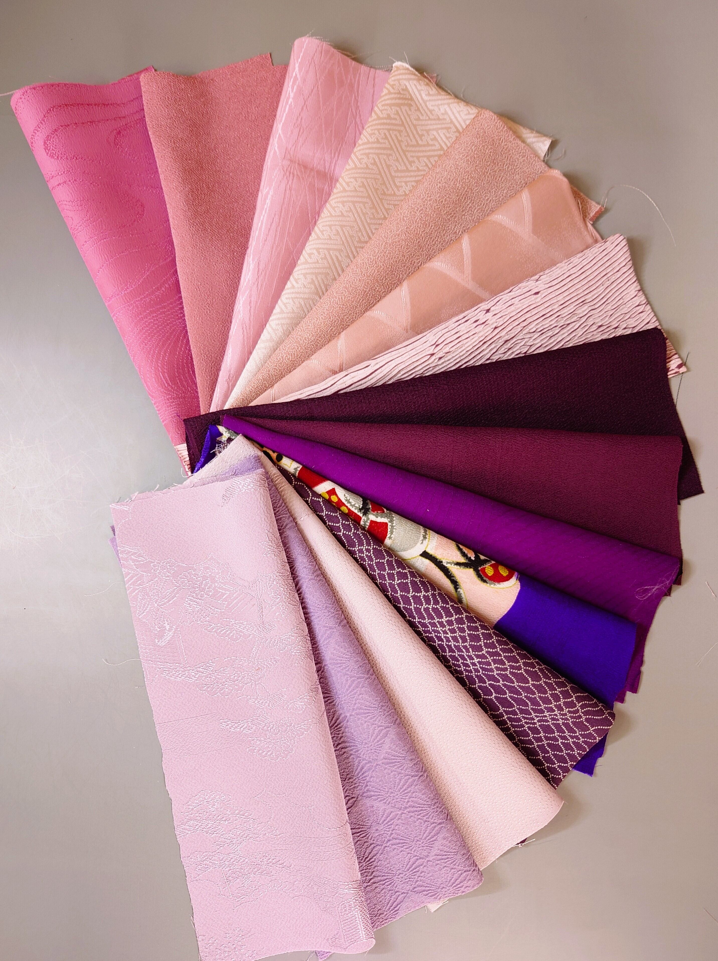 藤色・紫系の生地を15枚セットにしました。